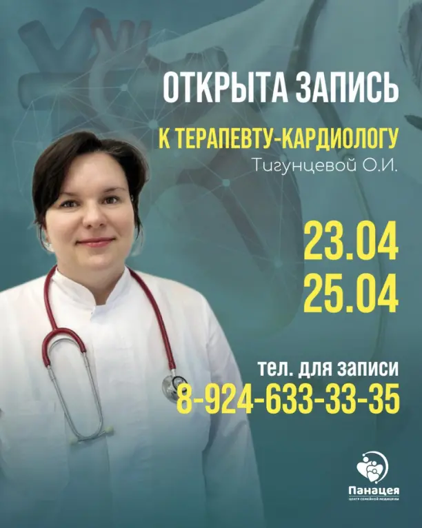 Телефон для записи на процедуры функциональной диагностики, анализы, а также на прием к специалистам центра семейной медицины «Панацея»: