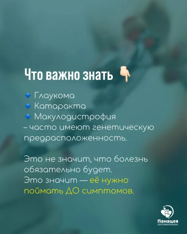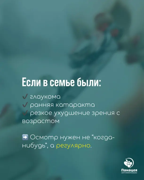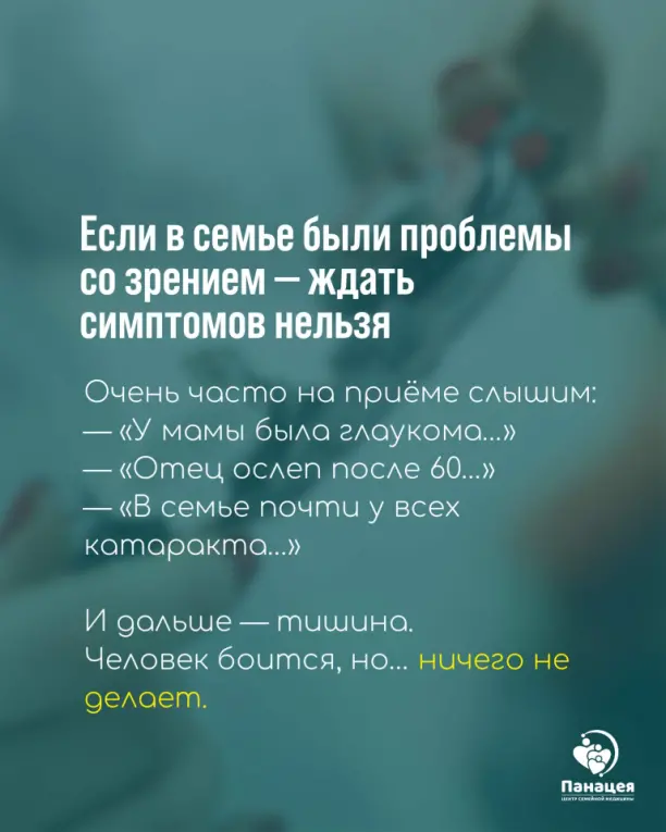 Если в семье уже были офтальмологические заболевания — проверка зрения должна стать регулярной.