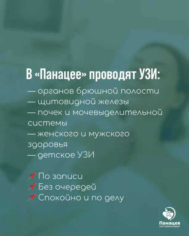 В центре семейной медицины «Панацея» УЗИ проводят по предварительной записи: