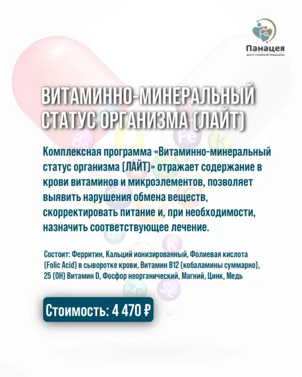 Мы обновили линейку комплексных обследований — теперь ещё больше полезных анализов по сниженной стоимости, чтобы вы могли заботиться о здоровье легко и доступно.